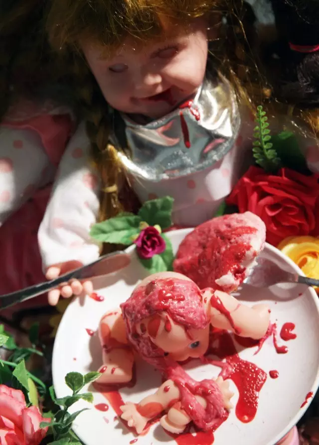玫瑰红加洋娃娃,一大堆粉嫩的colorful,女孩得不能再女孩了。绕一圈却发现,四个大娃娃头有问题,不是瞎眼就是在啃噬残肢: