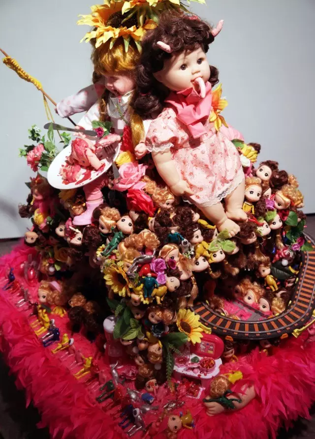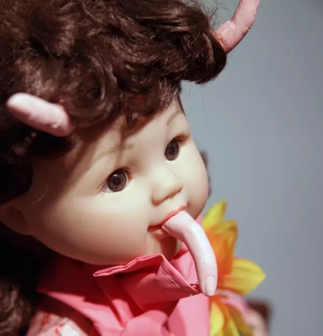 《娃娃堆填区》细节之一:嘴里长出手指头的娃娃