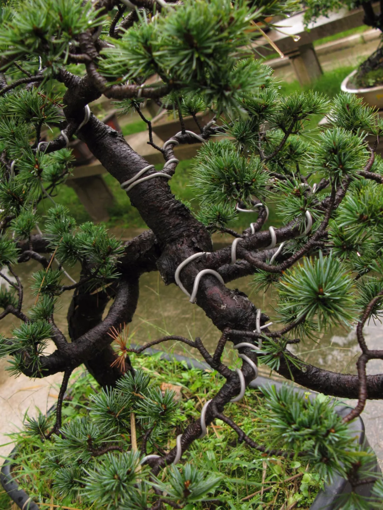 当然,养盆景可不只是缠铁丝这一个方法,还需要嫁接、控制水分、土壤等一系列技巧,复杂着呢。想尽一切办法,让植物不能自然健康地生长,以达到人们追求“自然”的审美趣味。很矛盾吧?