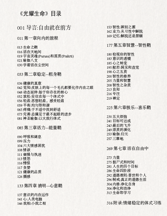 这本书系统并且循序渐进介绍了瑜伽八支。通过作者的描述,更像是深入地经历了一段精神的旅程。这本书简明扼要的语言阐述,让读者很容易接受和理解。